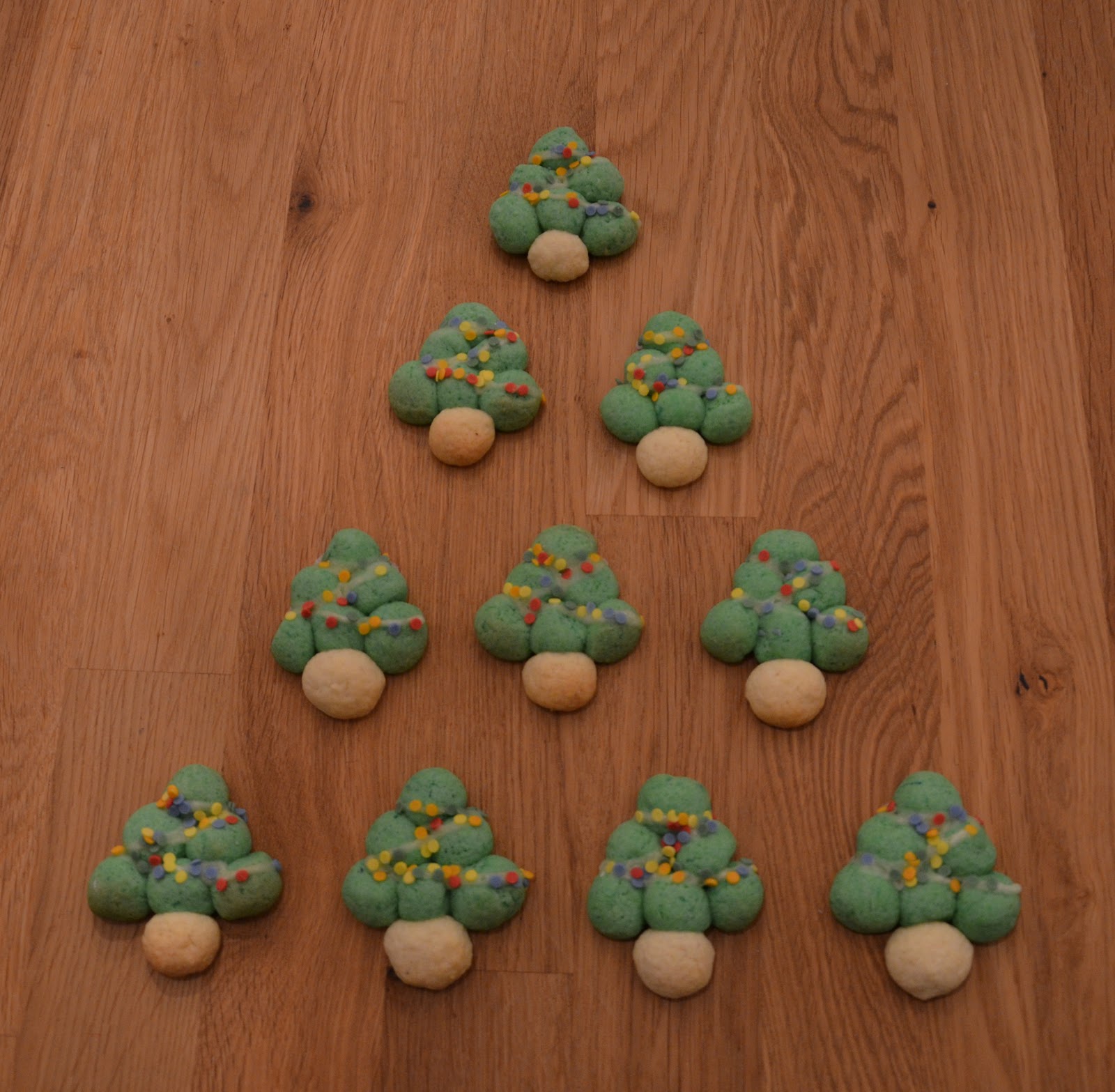 Dann gibt es noch lauter kleine Keks-Bäumchen, die zusammen gelegt einen größeren ergeben.